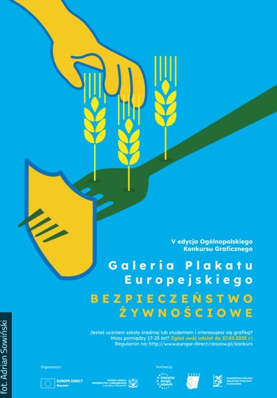 EUROPE DIRECT Rzeszów działający przy Wyższej Szkole Informatyki i Zarządzania w Rzeszowie zaprasza młodych twórców do udziału w V edycji Ogólnopolskiego Konkursu Graficznego Galeria Plakatu Europejskiego. Tegoroczne hasło przewodnie to „Bezpieczeństwo żywnościowe” – temat niezwykle aktualny i istotny w kontekście przyszłości Europy oraz priorytetów polskiej prezydencji w Radzie Unii Europejskiej.